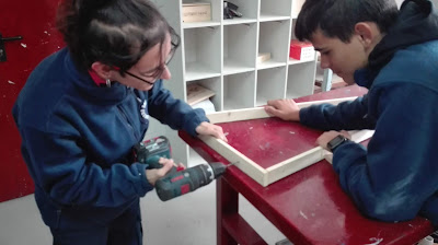 Esta mañana, nuestros chicos del Programa de Aula Taller han preparado en el Centro un soporte de madera para el Photocall en el C.E.I Ntra. Sra de la Rosa. Después se han desplazado hasta allí con el profe José Luis para instalarlo.